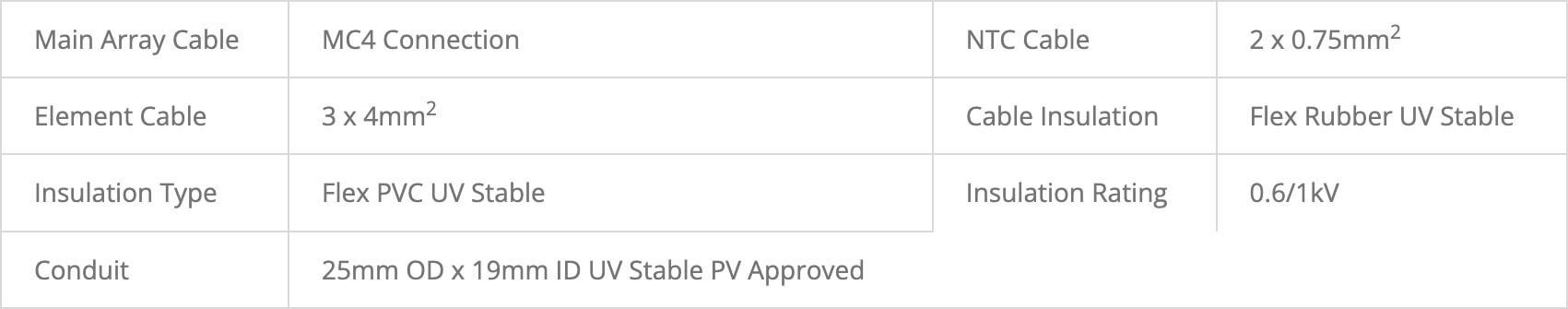 Het buffervat heeft een speciaal DC elektrisch circuit. In dit circuit is een DC goedgekeurd over temperatuur uitgesneden (PV-OTC) geïnstalleerd. Bovendien heeft het buffervat een specifiek element met een lange levensduur dat is ontworpen voor DC om bij de PV-array te passen.