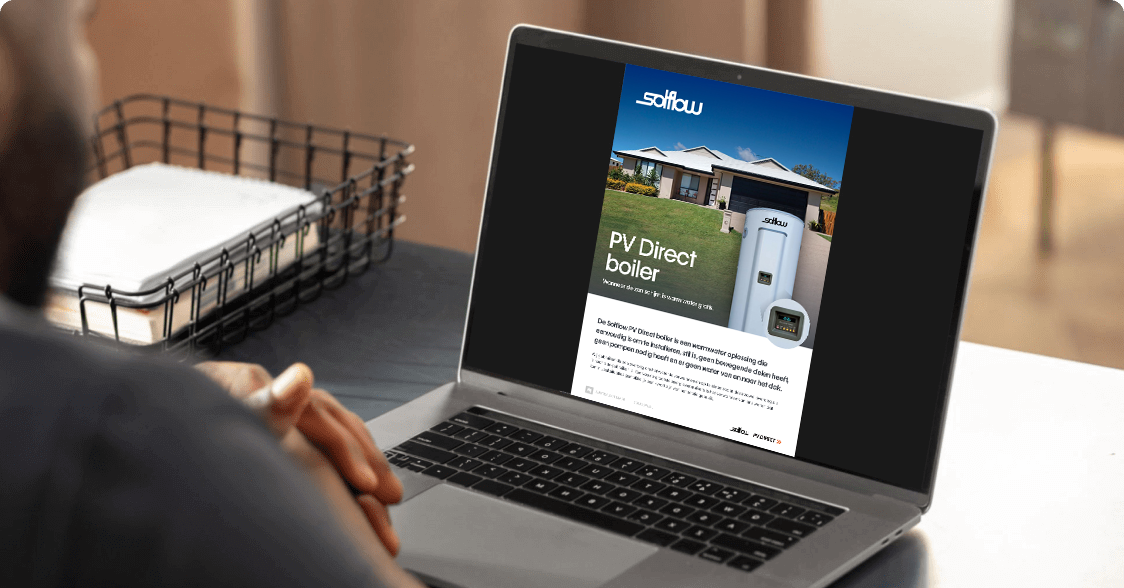 Dat is waarom veel mensen kiezen voor een installatie van de Solflow PV Direct Boiler. Dit is vaak in combinatie met een warmtepomp of als vervanging van hun huidige buffervat of boiler met PVT panelen die slechts maar 1 functie hebben.
