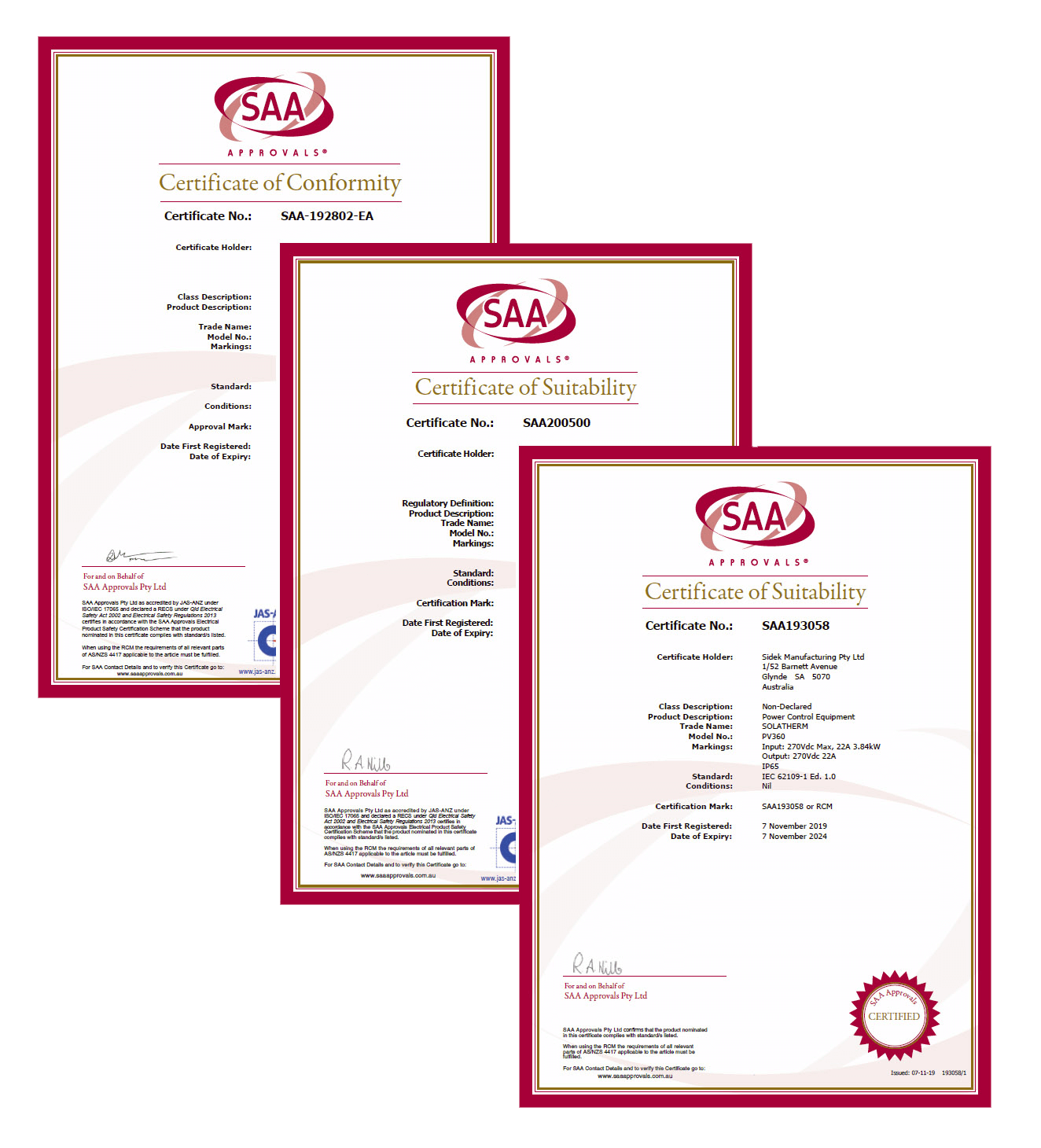 De Soulflow-besturingseenheid en het systeem hebben tests en certificering ondergaan in Australië om te voldoen aan de vereisten van IEC62019-1, AS/NZS60335.2.21, AS/NZS60335.1, IEC60529 tot een IP65-classificatie.